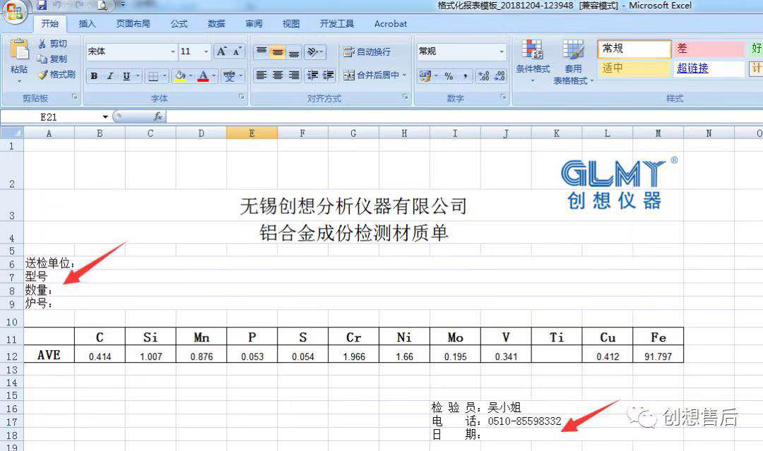 另外送檢單位及檢驗員、日期等需要根據實際情況打印報表后單獨用筆填寫