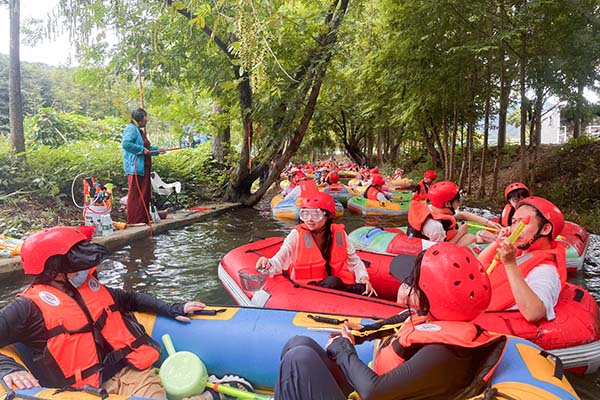 中午,大家圍坐在一起享用了美味的便餐,在輕松愉快的氛圍中交流著上午活動(dòng)的感受。短暫的休息后,下午的漂流活動(dòng)正式開(kāi)啟,將此次團(tuán)建活動(dòng)推向了高潮。