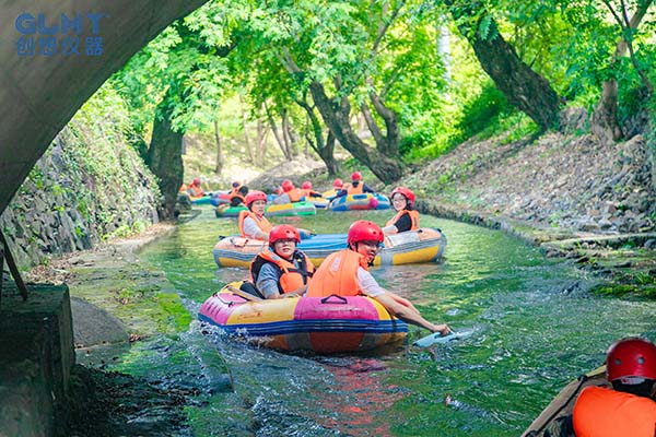 漂流過(guò)程中,河道蜿蜒曲折,水流時(shí)而平緩,時(shí)而湍急。大家乘坐著皮筏艇順流而下,感受著大自然的清涼與愜意。不過(guò),對(duì)于創(chuàng)想儀器的員工們來(lái)說(shuō),漂流只是“前奏”,打水仗才是這場(chǎng)活動(dòng)的“重頭戲”。大家紛紛拿起水槍、水瓢,向身邊的人發(fā)起“攻擊”,一時(shí)間,水花四濺,歡聲笑語(yǔ)回蕩在整個(gè)山谷。無(wú)論是領(lǐng)導(dǎo)還是員工,都沉浸在這歡樂(lè)的氛圍中,忘卻了工作的壓力和疲憊。