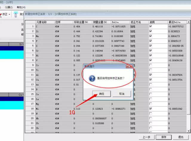 單擊“確定”啟用控樣修正系數(shù)完成控樣修正